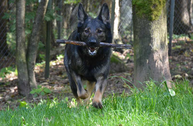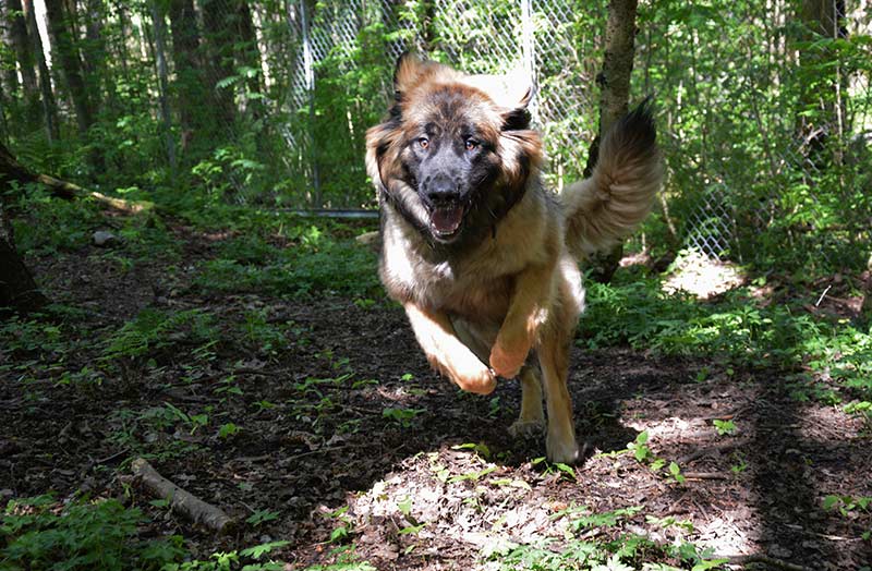 I tillegg har vi større innhegning/luftegårder i skogsterreng hvor hundene kan løpe fritt og leke.